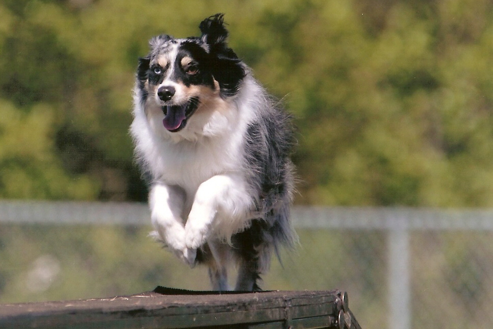 I switched Duncan to running contacts (instead of stopping him at the bottom) about two years ago to keep his motivation high throughout the course. As usually happens without any extra training, running turned to jumping, and in the excitement of a trial, jumping the entire yellow contact zone was pretty easy for my little guy. I’ve been taking an online running contact course since the spring, and am starting to see Dunc figuring out that his job is to run off the end, with no leaping. He still does the Flying Puppy imitation from time to time, but more often, the faster I go, the lower and faster he goes, and he’s coming down the entire board, running right off the end. Retraining his contacts has been a long haul, with the acceptance that we’re going to miss some Q’s. While we’re not done yet, I can see definite progress, and his confidence and speed are on a steady increase, too. I adore seeing my boy run with joy like this.