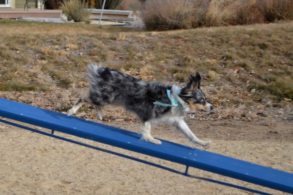 Well, with Des, we just haven’t had the opportunity to take that hike in the desert. Oddly enough, the reason is because my husband is off banging away at the range most weekends doing his sport, generally returning with a big grin of his own. So I’ve improvised. I walked Des all around while my husband was using the nail gun on our shed. That worked well, because the air compressor would also unexpectedly go off with a whoosh. But how often can you bank on someone nailing something when you need it most?