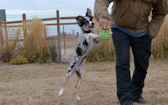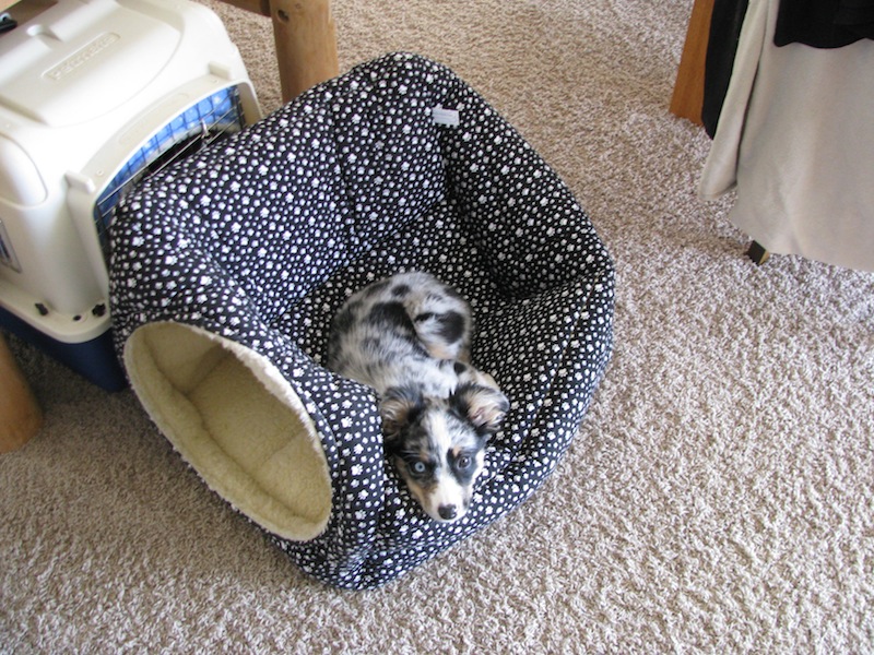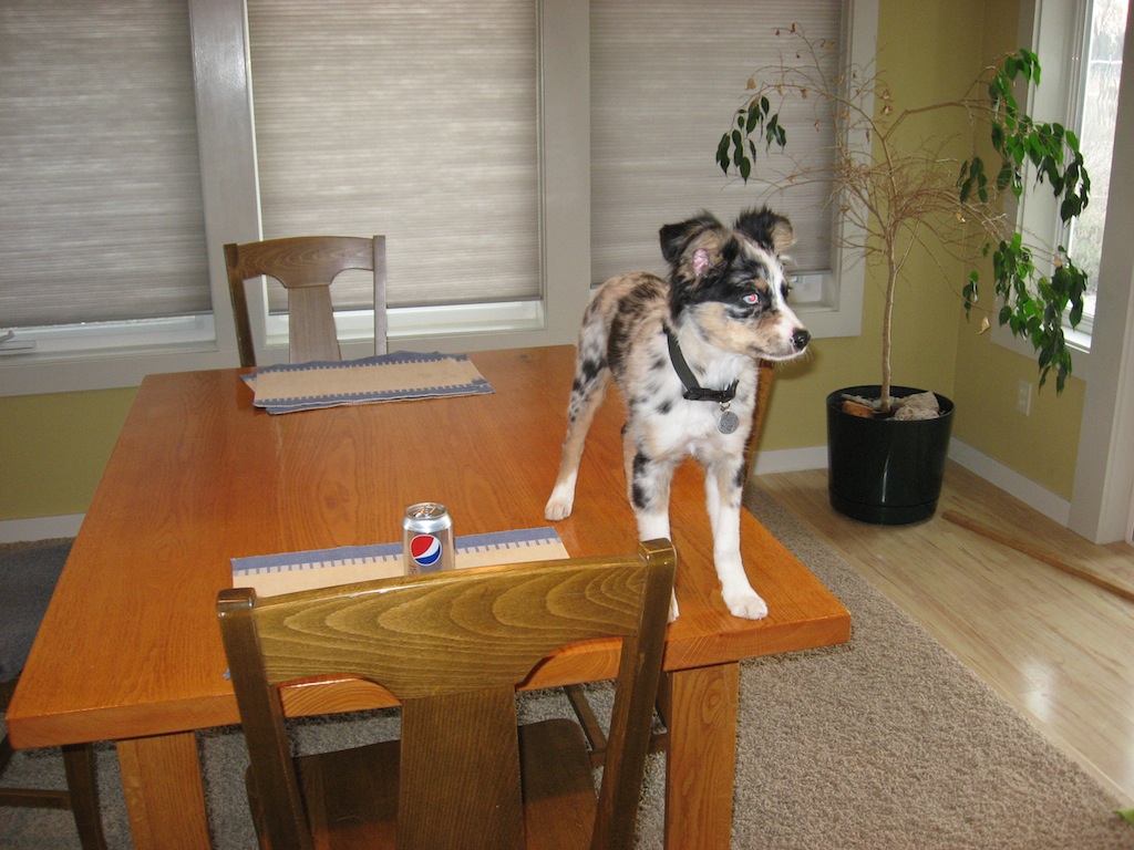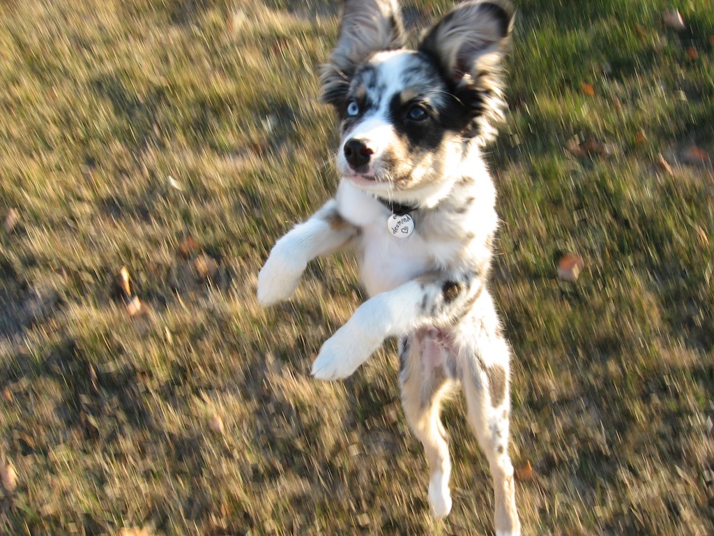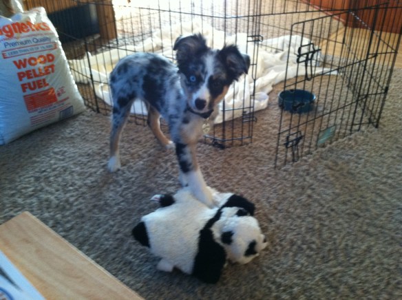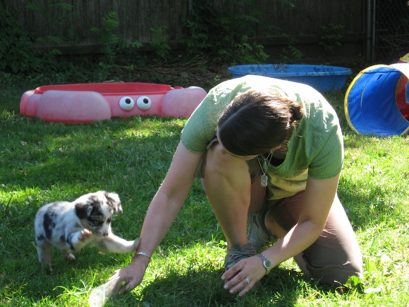 I know several dogs that are afraid of loud noises; fireworks and gunshots being the worst offenders. Given that I live in the sticks, gunfire isn’t an odd thing to hear in the neighborhood, especially right after the fall bird season opens. Most of the places we practice agility around the valley are close enough to fields or the river to have lots of random banging going on. And most of us find out that our dogs have a problem with it when it’s too late…when we find a cowering, shivering, terrified little furball hiding under the bed. At that point, things like Thundershirts and cranking the TV volume can help, but with my puppies, I really try to desensitize them to banging early in life.