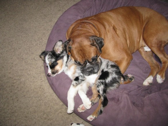 Why do I mention bubble wrap? Here’s my training tip of the week, courtesy of my Boxer, Angus. You see, Angus loves bubble wrap. If he even sees the stuff, he gets all excited and drools (because Anguses drool when they’re excited) and starts jumping up and down. Mind you, Angus weighs about 95 pounds, so when something of his size starts imitating a pogo stick, the little dogs scatter. Me, too. The Pogo Stick sometimes crashes into things. Anyway, bubble wrap. His favorite are the silver dollar sized bubbles. He’ll take off with a sheet of those reminding me of the fish from Finding Nemo…”bubbles…MY bubbles!” and chomps them into oblivion, each pop further punctuating his joy.