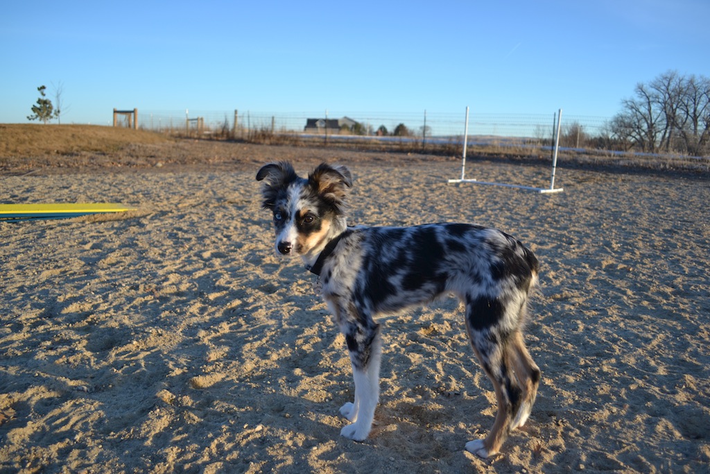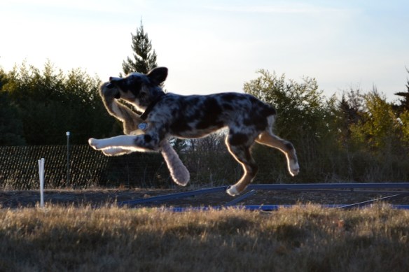 The trial was fantastic. Duncan, amazing Duncan most definitely got his brave on. In a completely new place on weird footing (some sort of tentacle-like dormant grass) after being stuffed in a bag and going up and down until his ears popped, he came out swinging, and ran two of his fastest runs, ever. He also earned his very first QQQ. Rock on little man!