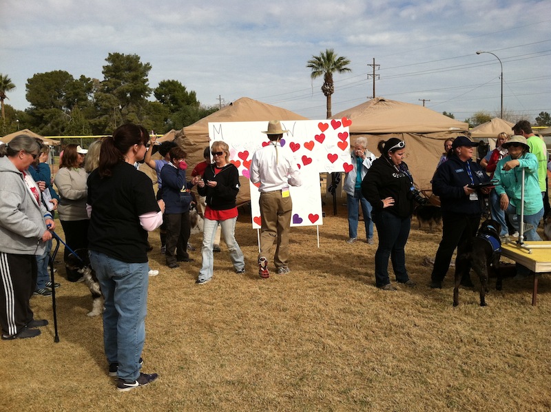 This trial was part of a large group of dog sporting events held at the Paws for a Cure event, a fundraiser for the Canine Cancer foundation. This foundation is near and dear to my heart, since we lost our first beloved boy Boxer, Sinjin to cancer, and Angus is a survivor. My trialling partner in crime runs a Boston who is also a survivor, so we made sure to visit the Foundation booth, where I made a memorial heart for Sinjin.